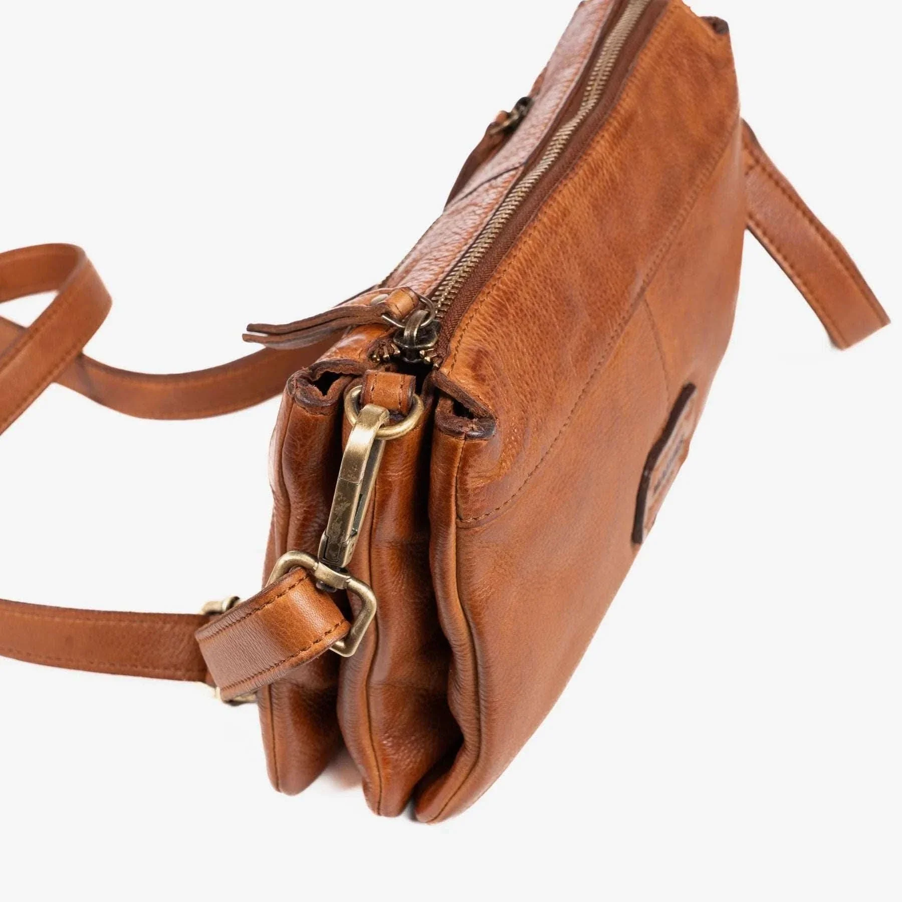 Bolso bandolera Serie Piel Lavada muy elegante y funcional. Acabado en piel natural de gran calidad. Interior de forro textil personalizado y un bolsillo con cremallera. El modelo lleva en la parte trasera un bolsillo cerrado con cremallera. Cierre central con cremallera.