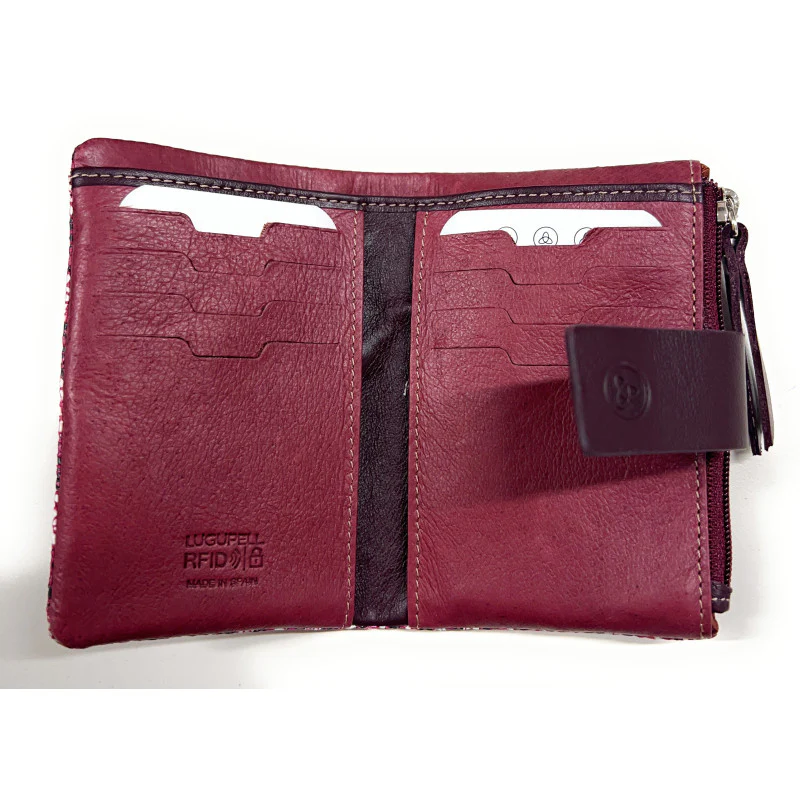 Billetero de Piel (12x8cm) monedero de cremallera Lugupell Aqua color Burdeos