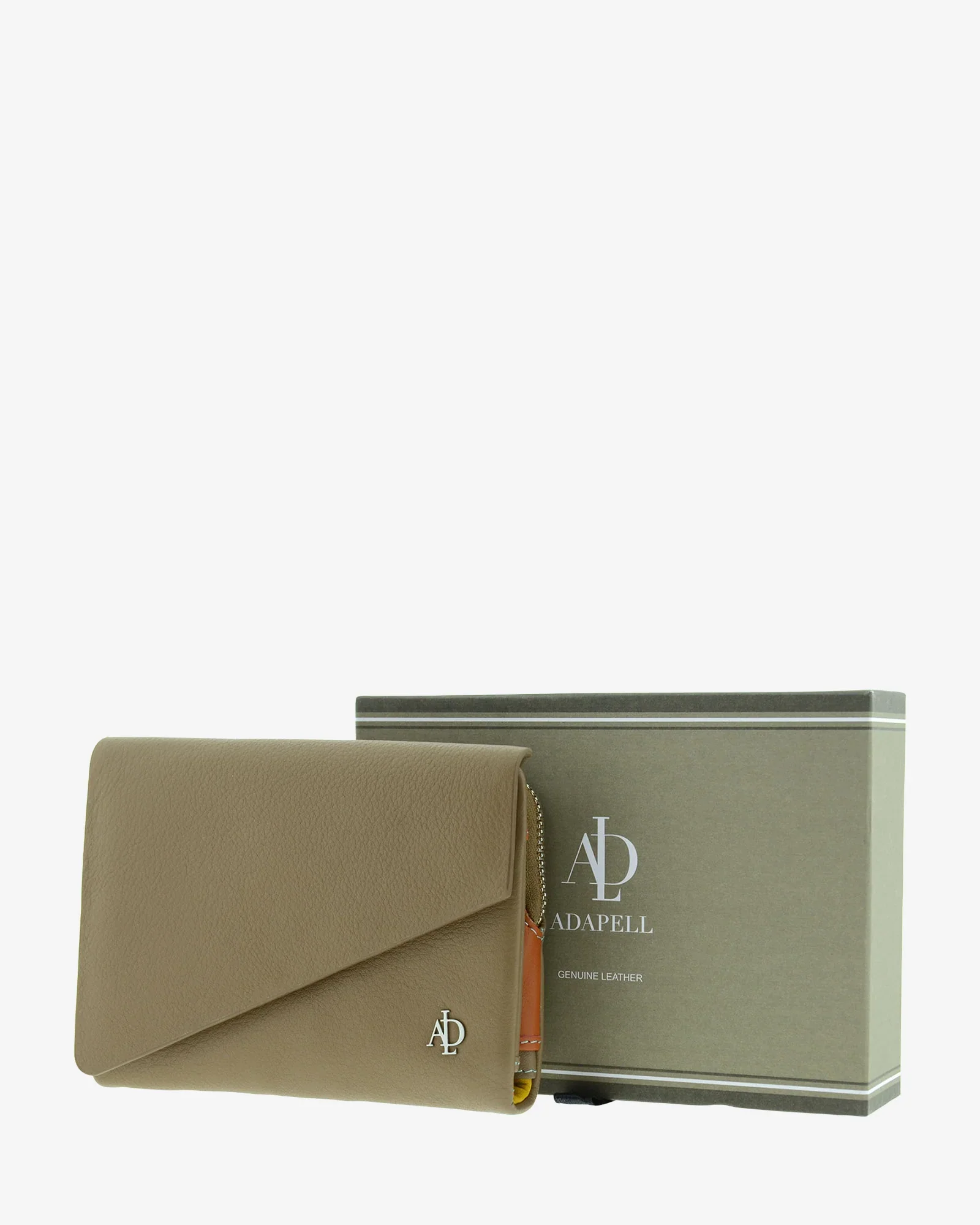 🤎 Billetero de Piel Adapell Asimetric Taupe – 14,5 × 9 × 3 cm