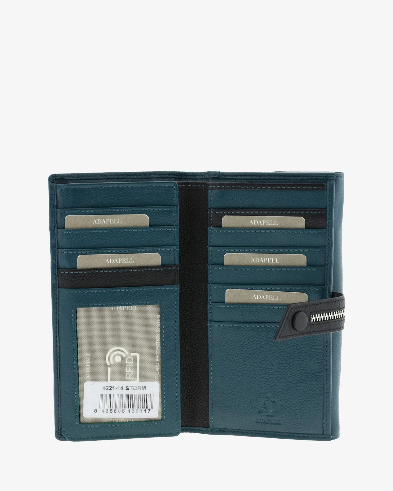 Billetero de Piel (18 X 10cm) monedero de cremallera Adapell Nayeli Storm
