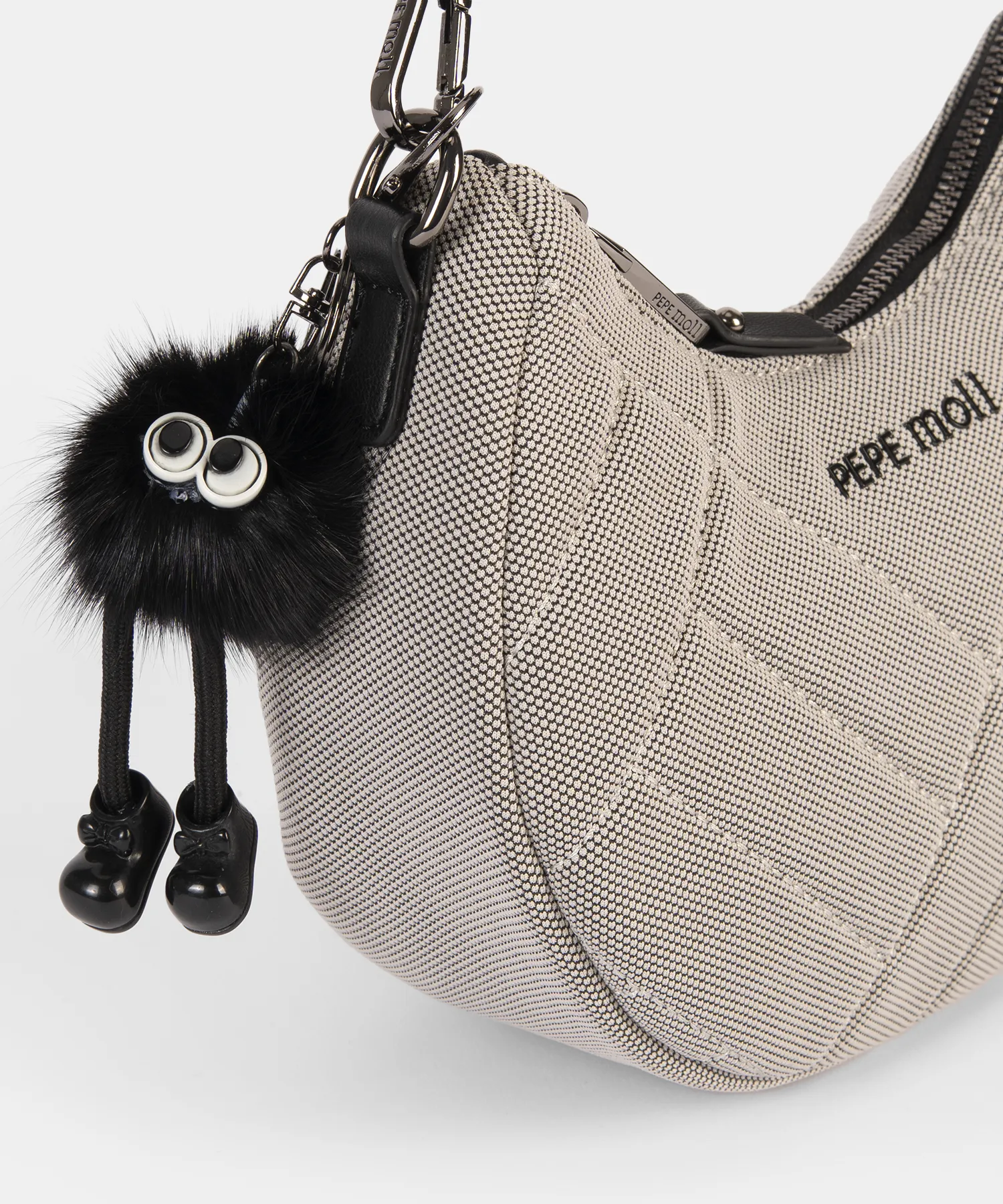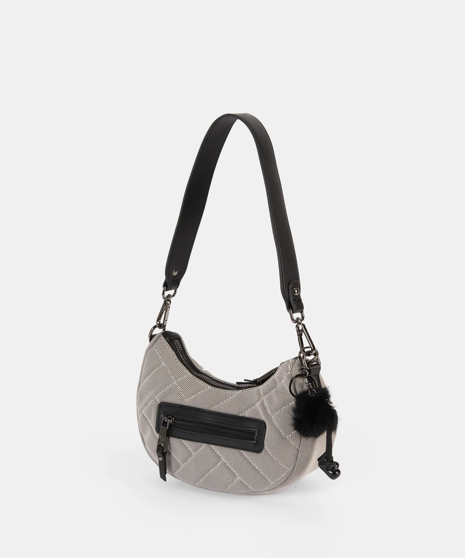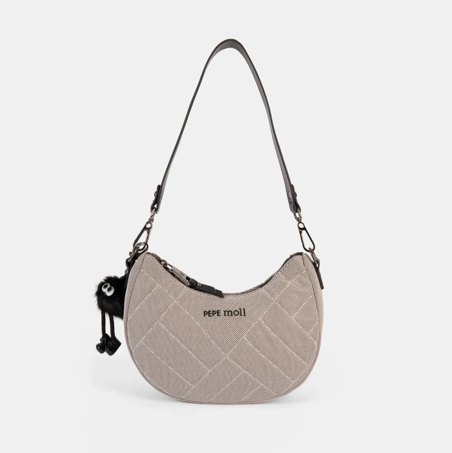 El Mili Gris de Pepe Moll es un bolso de hombro tipo media luna, compacto y con carácter propio. Su acabado acolchado en rombos y su formato estructurado lo convierten en un accesorio perfecto para elevar cualquier look casual sin perder comodidad.
