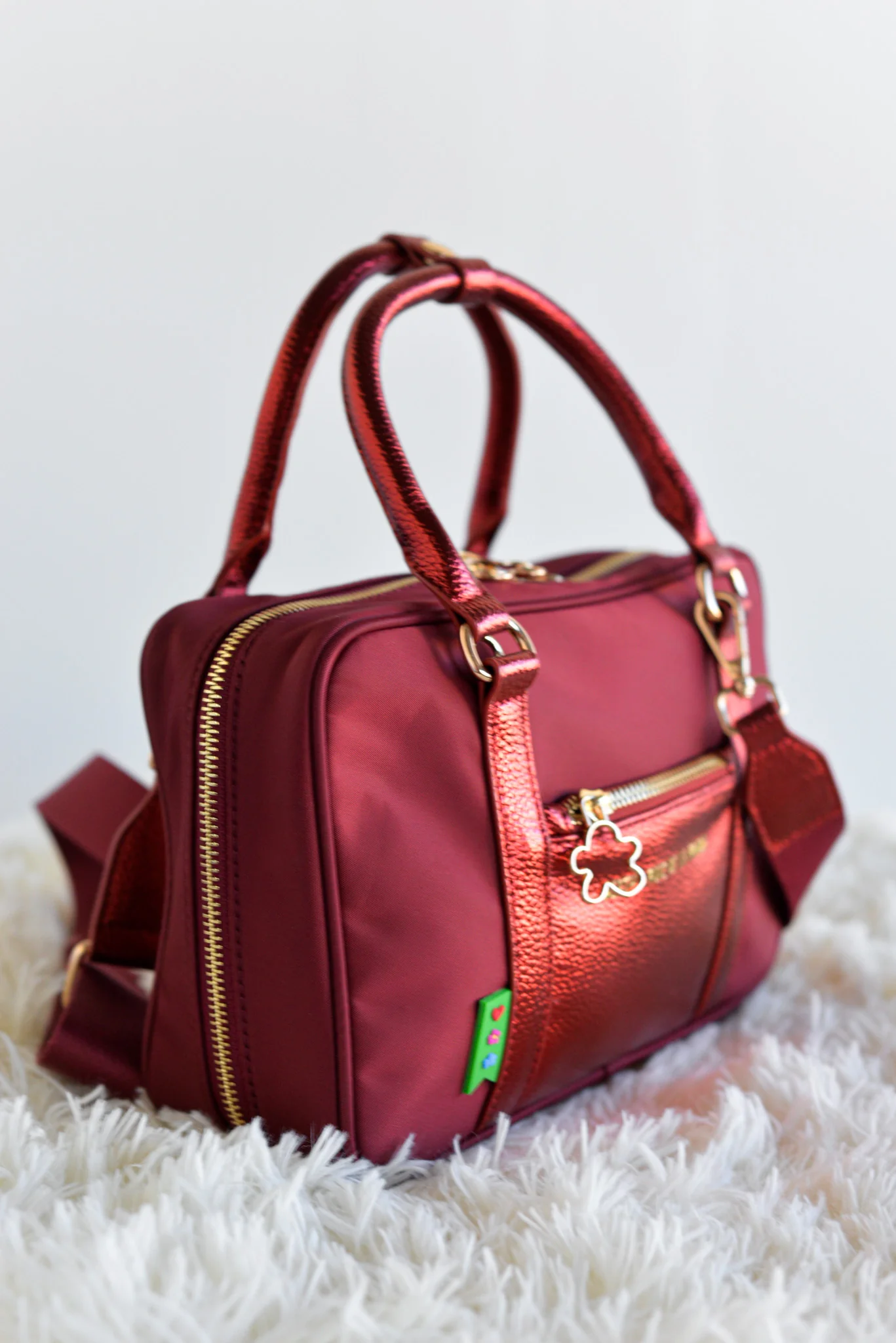 🍷 Bolso Nylon Metalizado Agatha Ruiz de la Prada Granate – 25 × 17 × 8 cm