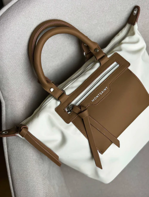El shopper Nevasca Blanco de Montsaint es la combinación perfecta entre diseño sofisticado y comodidad diaria. Fabricado en nylon reciclado premium, destaca por su acabado ligero, resistente y por los detalles en contraste marrón que le aportan un aire actual y elegante.