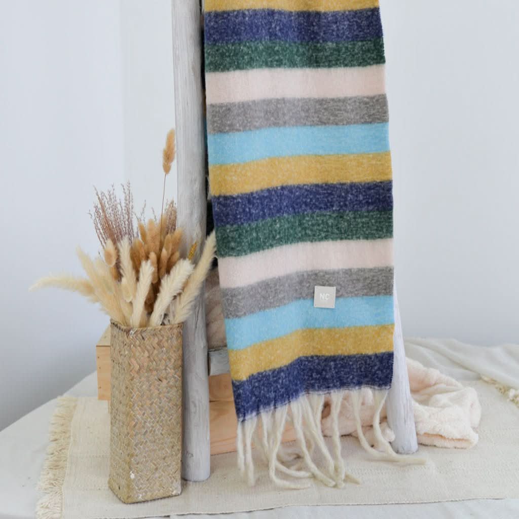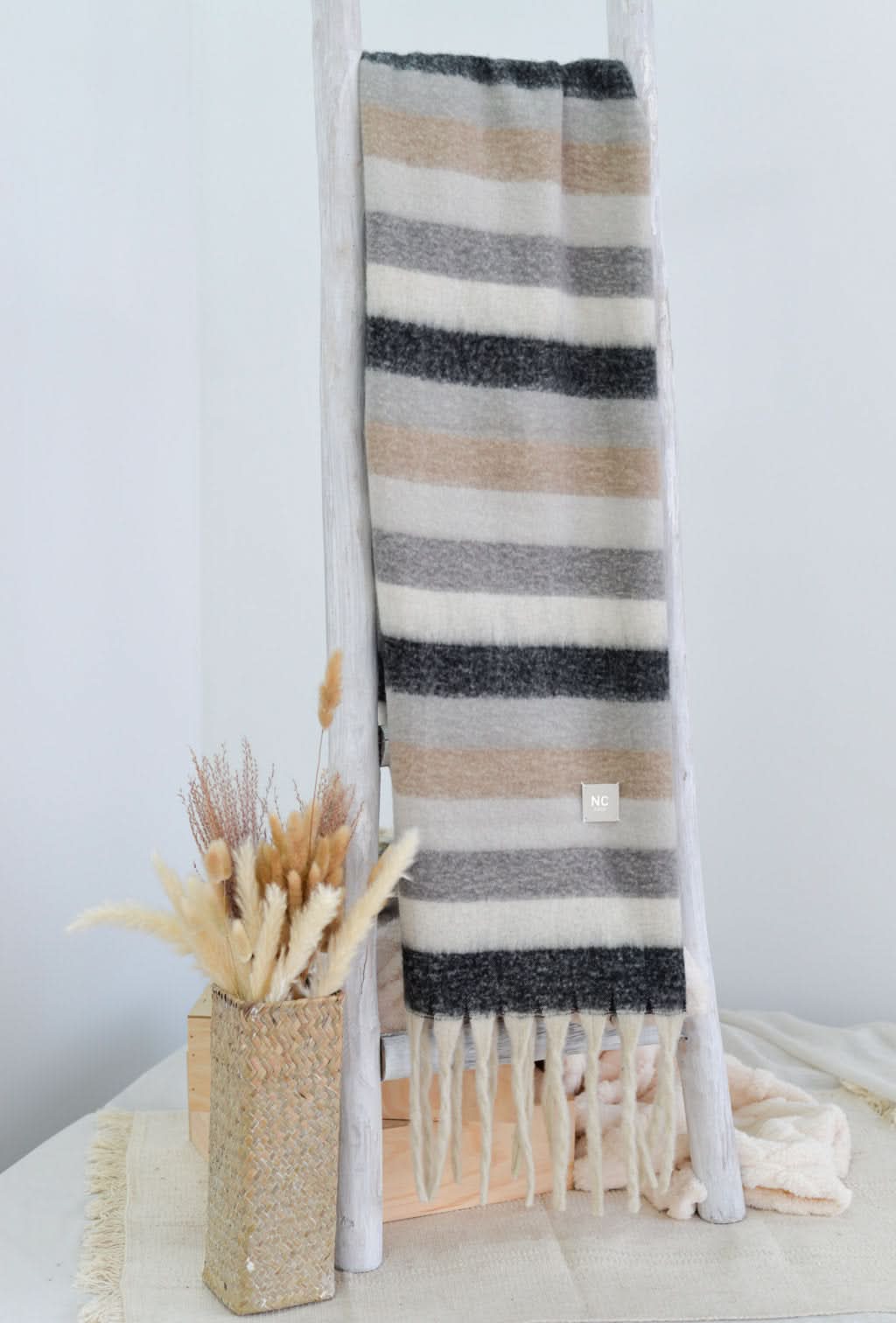 Bufanda gruesa diseñada en un tejido esponjoso y calentito.