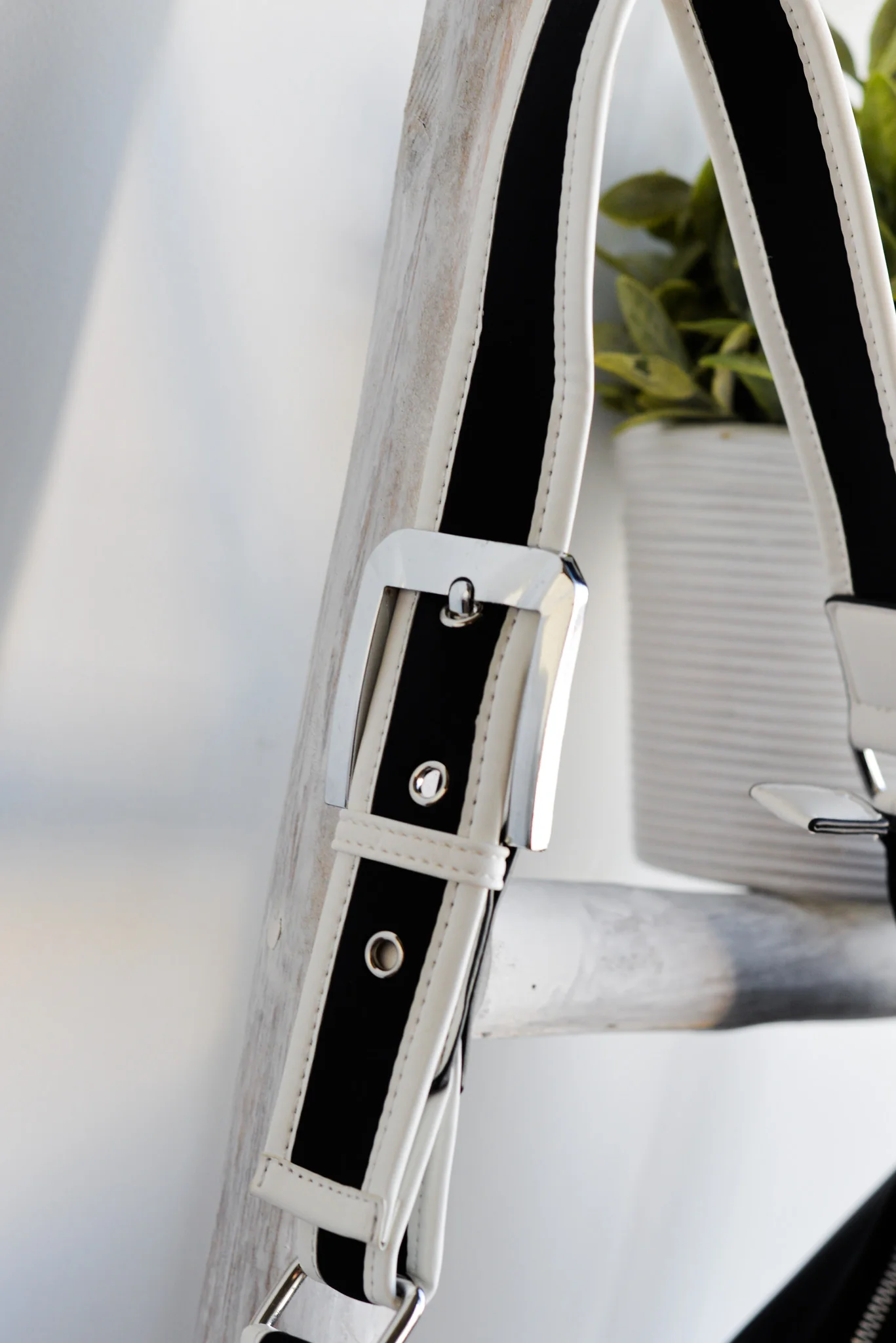 La góndola mediana Noco es la elección perfecta para quienes buscan un bolso elegante y funcional. Confeccionada en neopreno negro de alta calidad, esta pieza destaca por sus detalles en piel vegana blanca, que crean un contraste sofisticado y moderno. La hebilla metálica en plata en el frente y las correas es el toque distintivo de la colección, añadiendo un aire de lujo y estilo a este bolso.