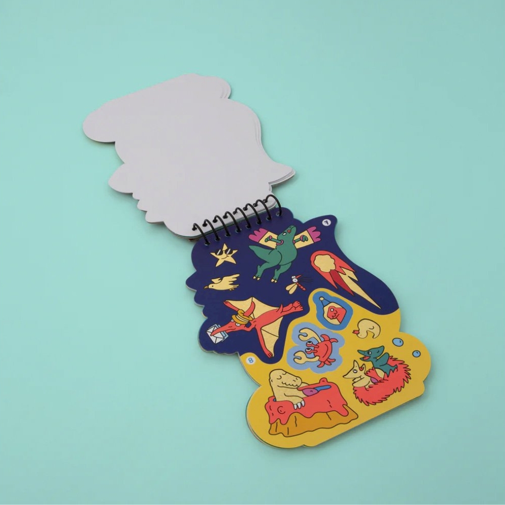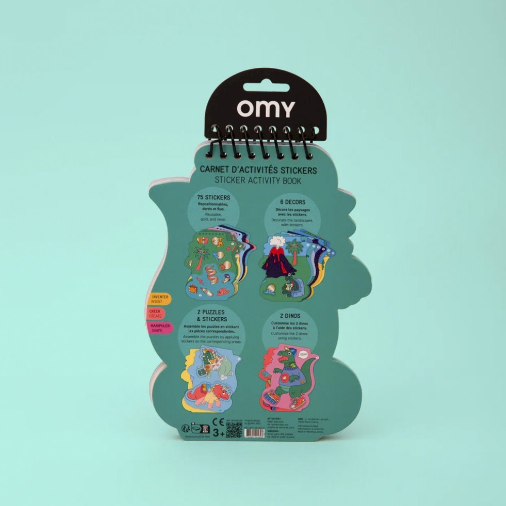 El libro de Actividades con Pegatinas Dino de OMY es un cuaderno creativo lleno de color y sorpresas para dejar volar la imaginación. Con una divertida ilustración de dinosaurio en la portada, este libro de actividades invita a los peques a jugar, decorar y crear usando pegatinas neón, doradas y holográficas que hacen cada página aún más especial.
