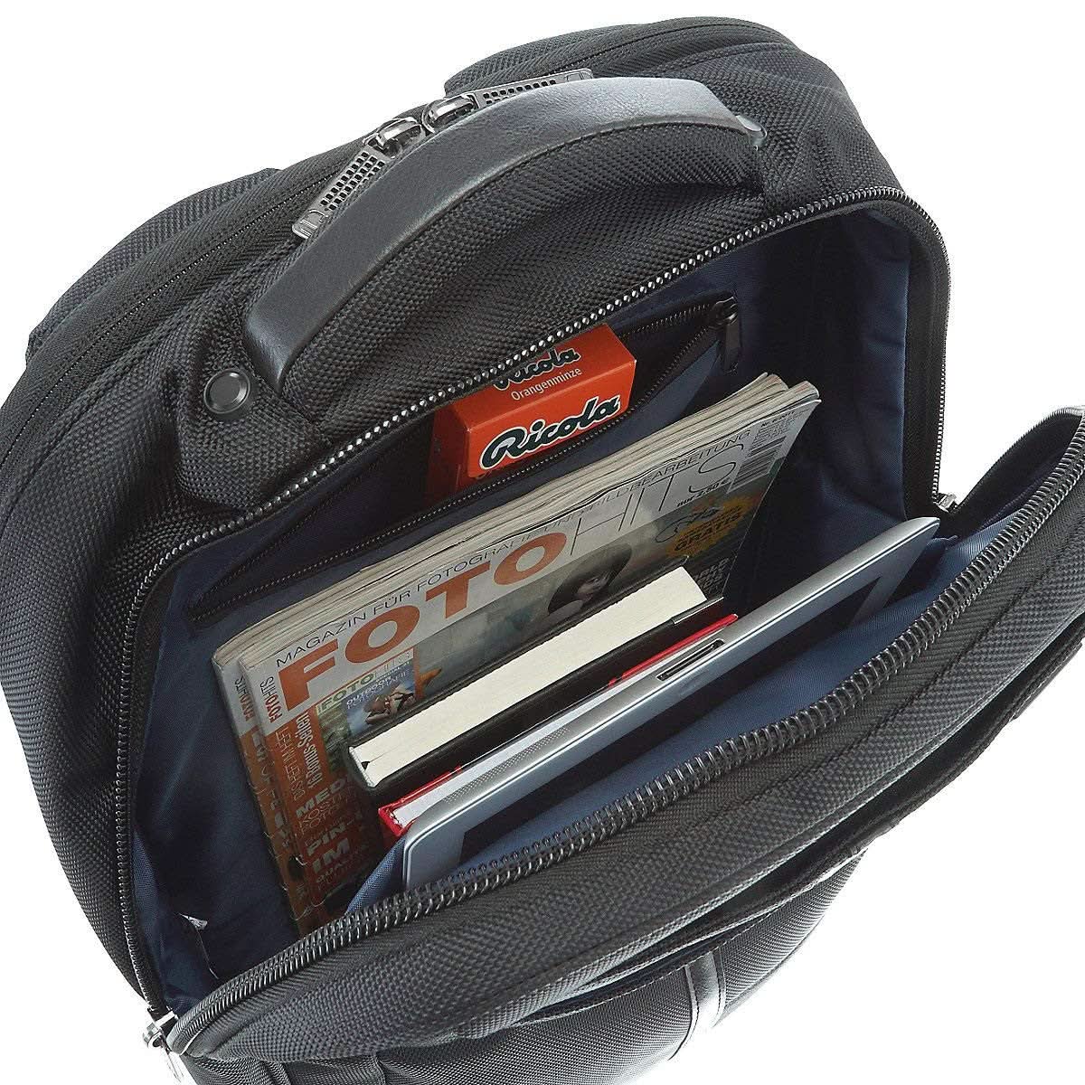 Mochila de hombre con dos asas ajustables para la espalda y asa corta para llevar en la mano. Tiene 2 departamentos de tamaño para un portátil de 15,6″ y bolsillo interno para tablet de 12,9″. Es una línea multifuncional, con todo tipo de detalles y unos excelentes acabados. Fabricado en Nylon + PU (piel sintética) con interior forrado. Se puede acoplar a trolley.
