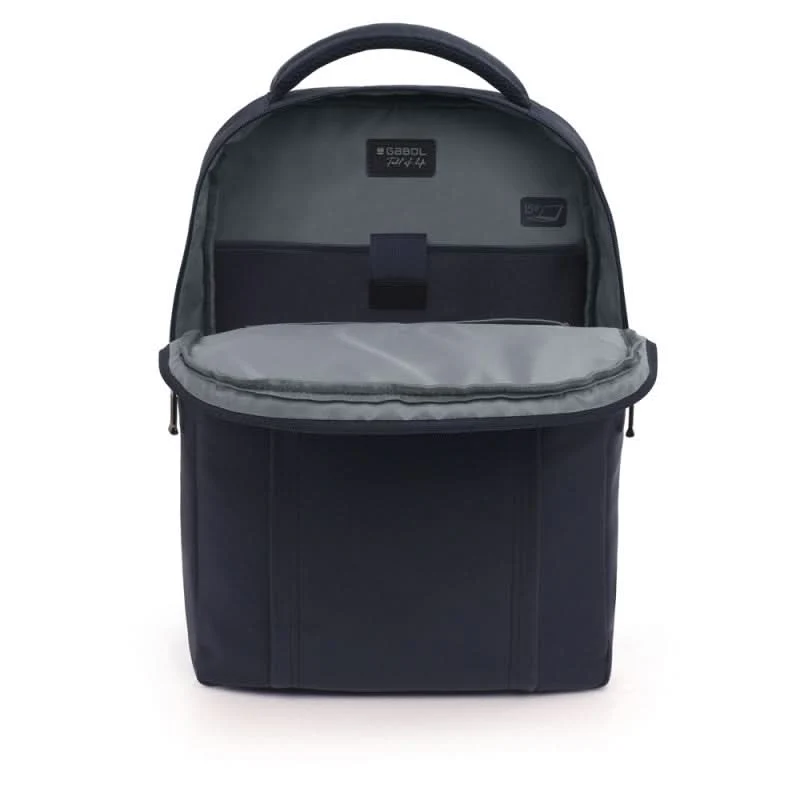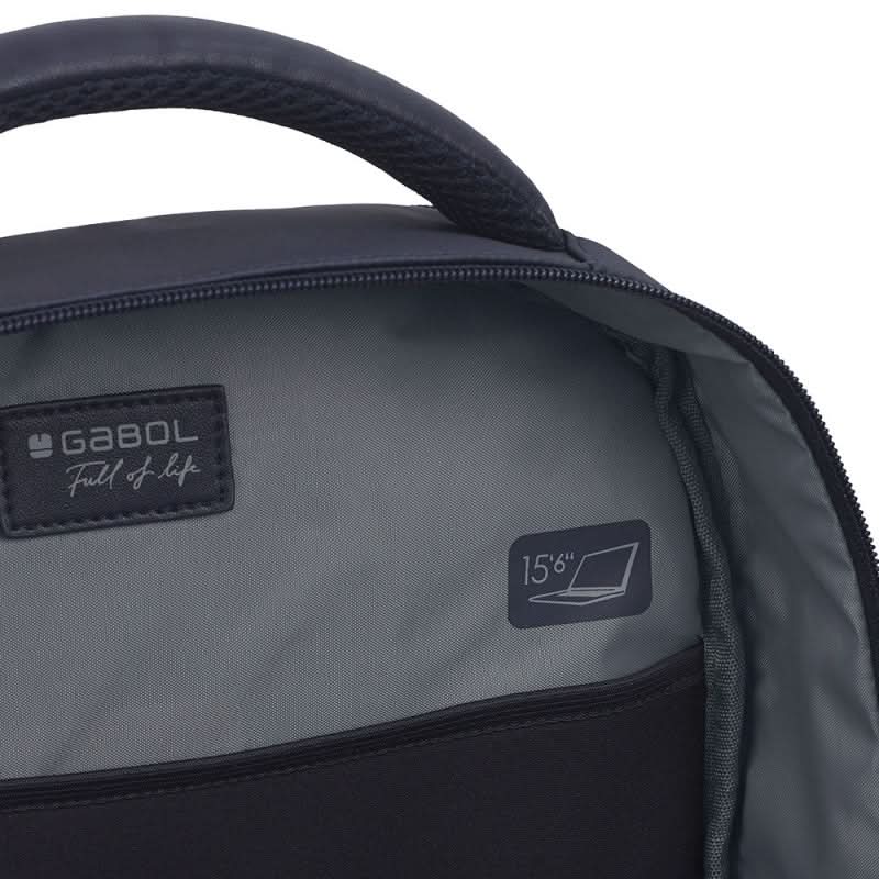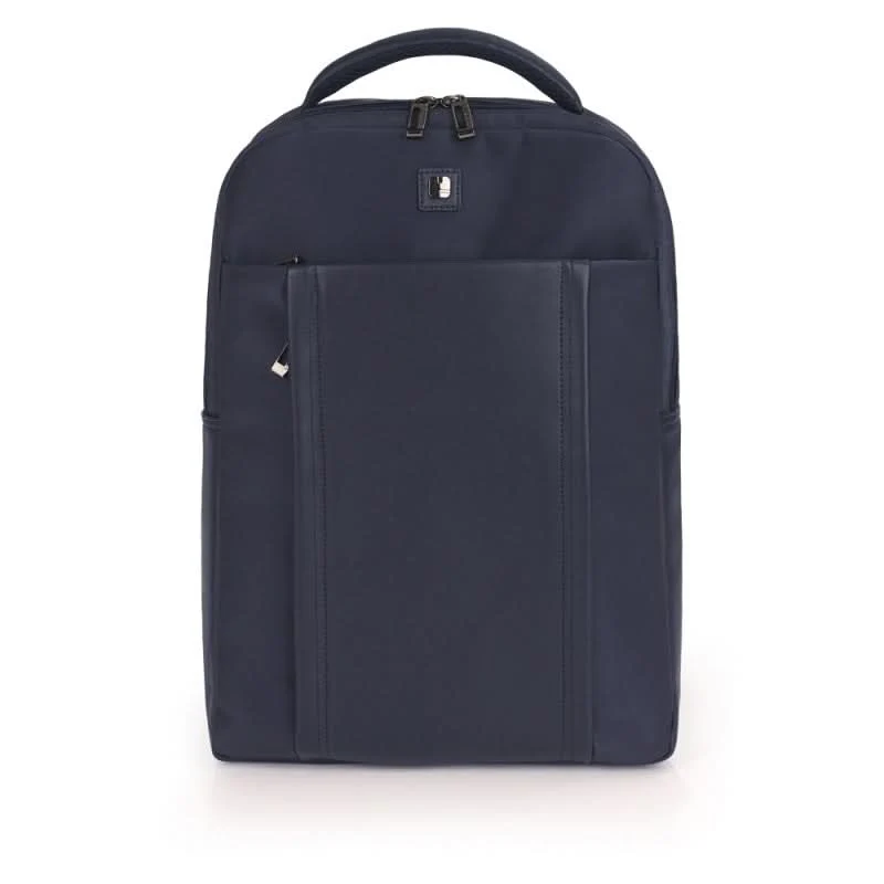 Mochila para portátil de 15,6» de piel sintética, azul, con dos compartimentos. El interior de la mochila está forrado y acolchado, con funda para portátil y organizador. Fabricada con material libre de plásticos PVC. Medidas: 31x43x12 cm. Volumen: 14 L