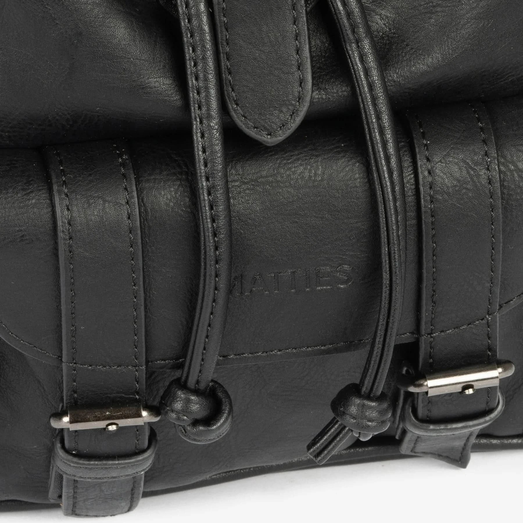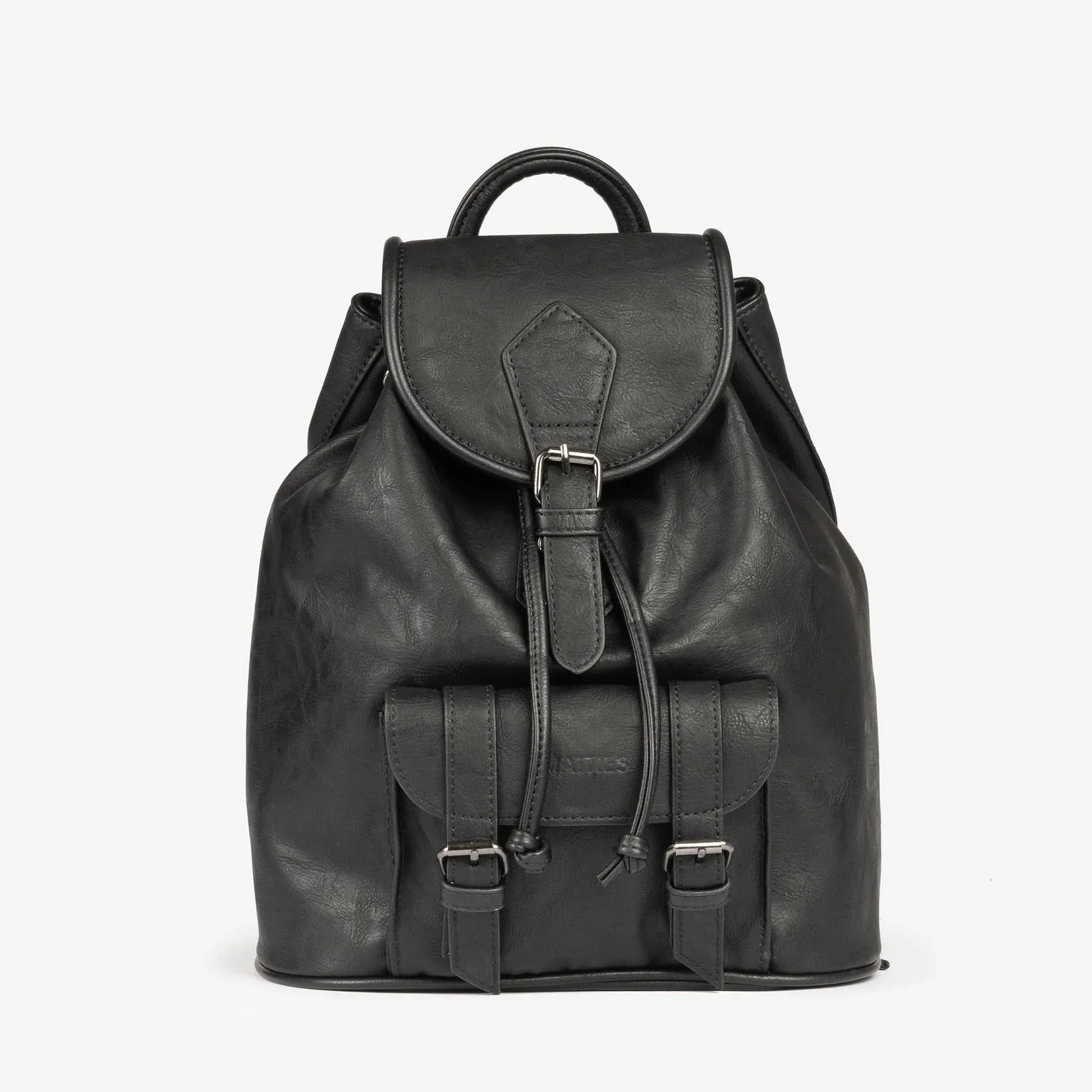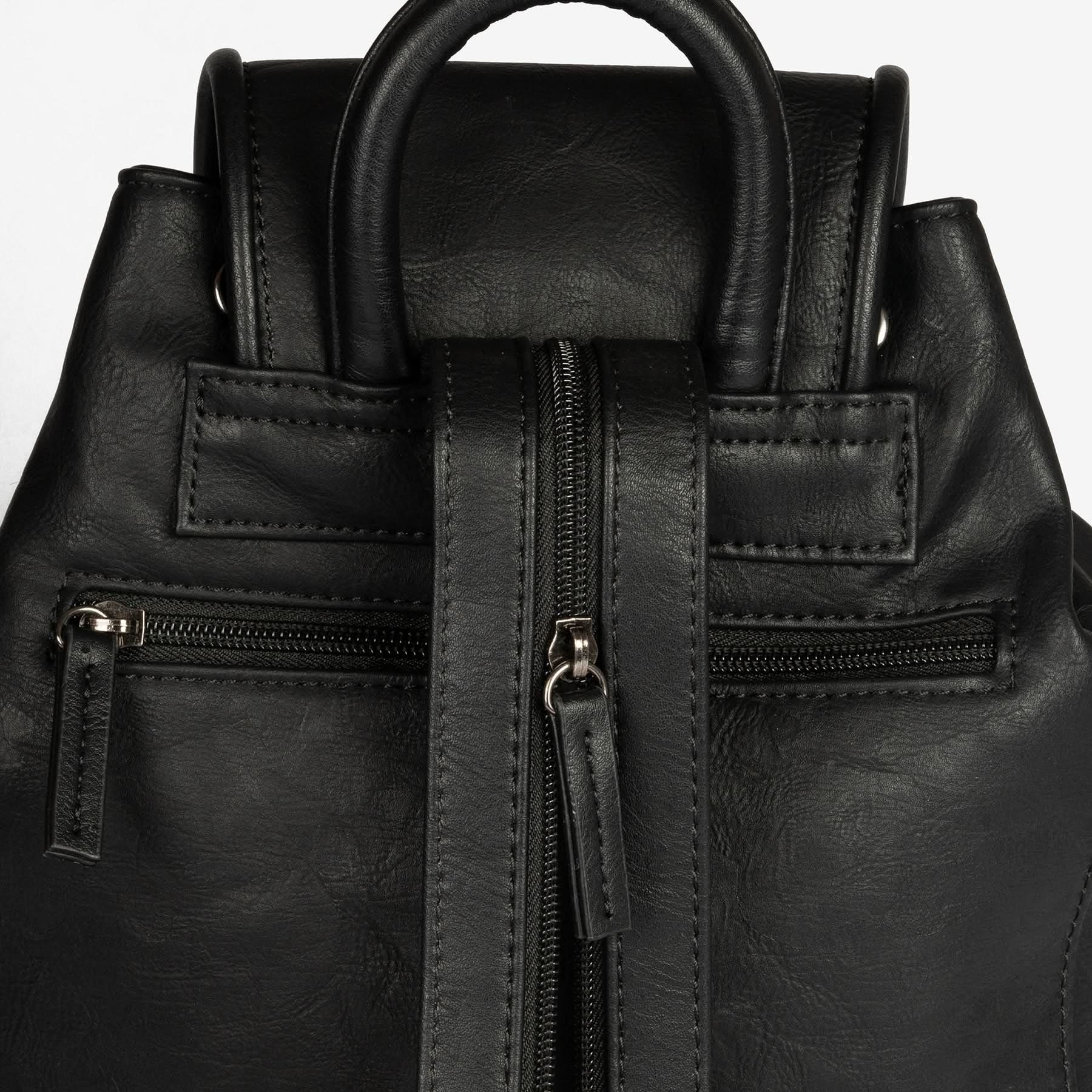 Mochila de corte clásico y muy funcional, Serie Mochilas. Acabada en polipiel de gran calidad. Interior de forro textil personalizado y un bolsillo con cremallera. El modelo lleva un bolsillo en la parte delantera, este hace el efecto de estar cerrado con una hebilla pero en realidad va con imán para que sea más rápido su uso. También dispone de un bolsillo trasero con cremallera. El cierre central es con una tira del mismo material de la mochila. El asa es multifunción, permite usarse como una sola o abriendo la cremallera se convierte en dos, para el uso tipo mochila.
