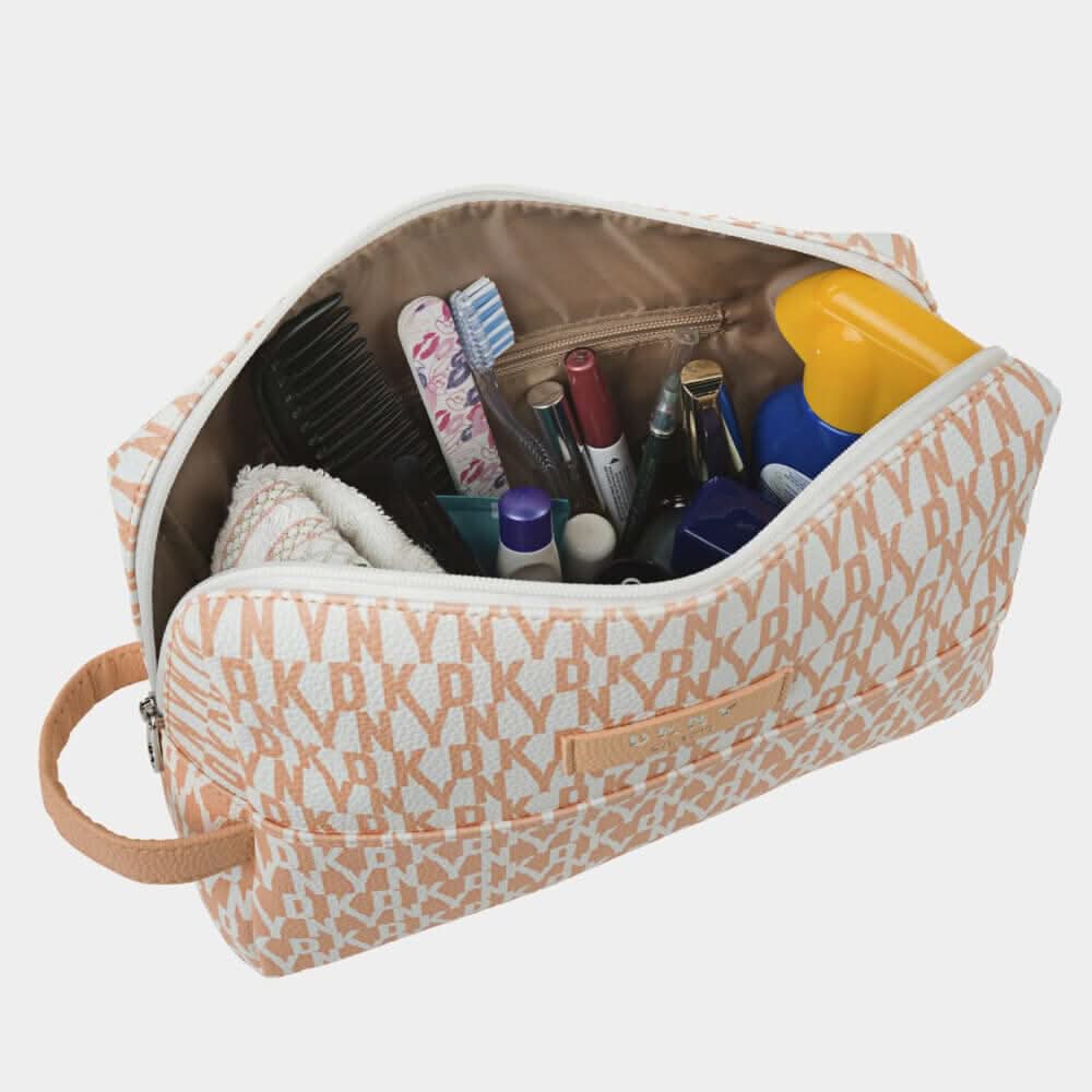 ¡Descubre el exclusivo Neceser de Viaje DKNY en un elegante y veraniego color melocotón! El complemento perfecto para tus aventuras con un toque de estilo neoyorquino. Este imprescindible neceser presenta un estampado distintivo de letras de la marca, destacando la autenticidad y sofisticación que solo DKNY puede ofrecer.
