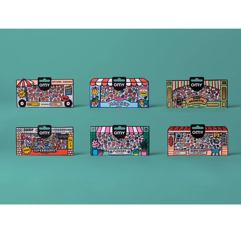 Con Pegatinas Fluorescentes Boutique Supermarket OMY creatividad en pequeño formato para disfrutar en cualquier momento. Las pegatinas Boutique XS de OMY llegan presentadas en un encantador escaparate ilustrado que las convierte en un detalle original y lleno de encanto, perfecto tanto para peques como para personas adultas amantes de la papelería creativa.